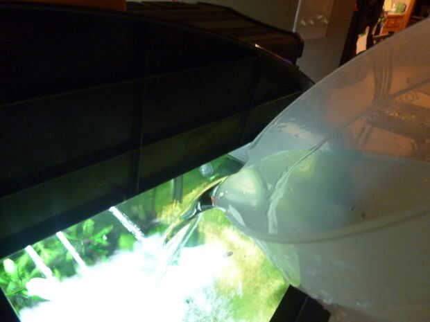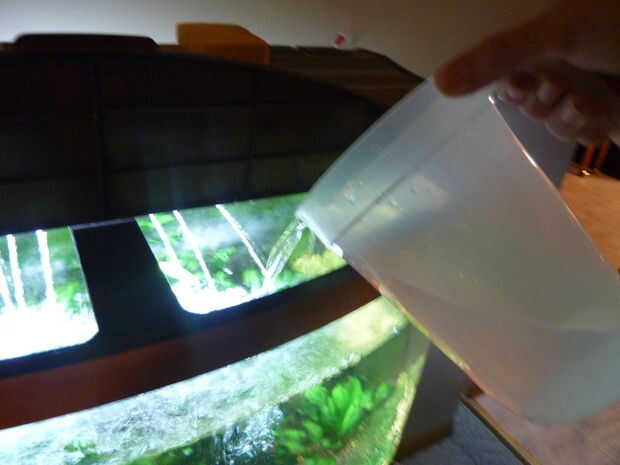 No vierta el agua el tanque muy rápido. Nadie quiere las decoraciones bastante poco flotando!