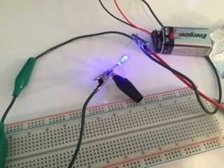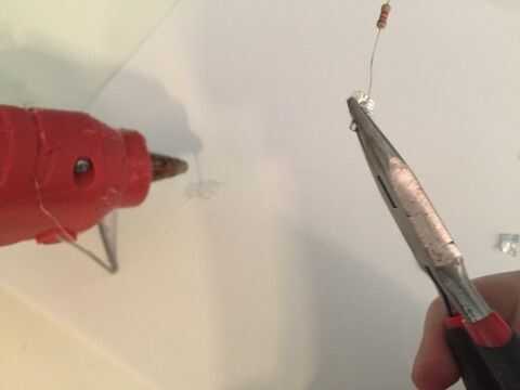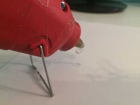 Después de su pistola de pegamento caliente se calienta pick encima de un trozo de papel de aluminio y un componente y presiónelas firmemente juntos. Mantenga a la pistola de pegamento caliente y cuidadosamente deje caer una pequeña cantidad de pegamento en tu conexión. Se pueden utilizar alicates o pinzas para mejorar tu conexión mientras el pegamento seca. Finalmente Compruebe que la conexión con las pinzas cocodrilo.