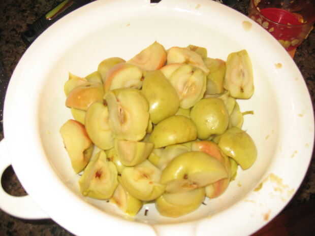 1 persona podrían lavar cortar y cocinar las manzanas mientras que la otra persona podrían colocar las manzanas de la ebullición del agua, escurrimos y los molino, dejan enfriar un poco porque el es muy caliente para manejar con las manos.