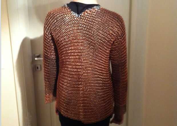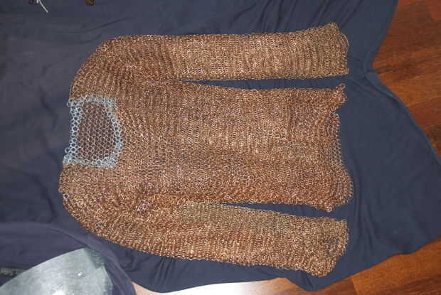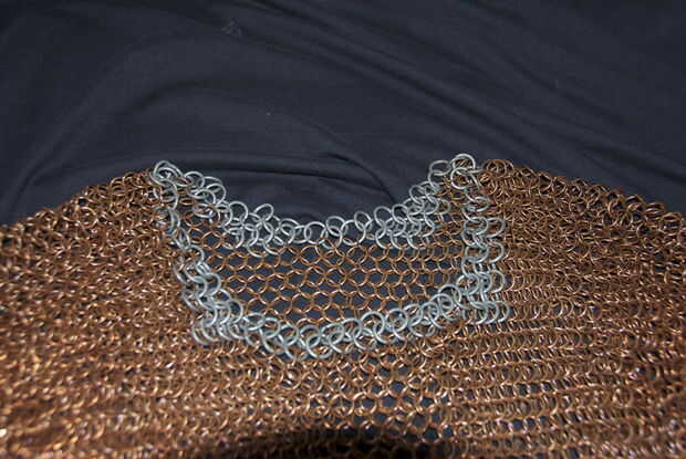 Una vez que haya terminado con su completa chainmaille, te felicito por tu perseverancia. Todo lo que necesitas hacer es la sección que es el agujero central (donde la cabeza entra completa, como el agujero que pega su cabeza a través de una camiseta) con anillos de acero. TIENES que hacer esto más el peso del chainmaille desgarrar la sección del cuello, por lo que usted necesita acero anillos para reforzar esta área. Compruebe las imágenes para ver lo que quiero decir.