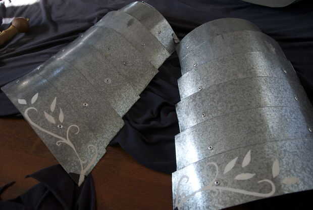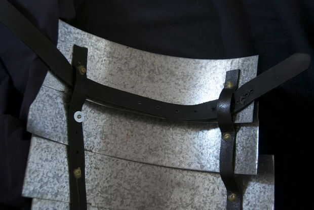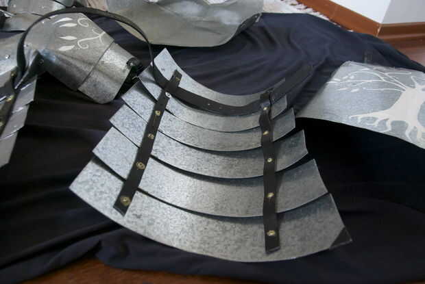 Esto me llevó una enorme cantidad de tiempo para averiguar debido a las complicaciones que tuve con sentarse. Sin embargo lo conseguí hace tiempo y funciona bastante bien. La forma en que funciona (si te fijas en el video) es que cada uno idéntico en tira de anchura superpone con el uno por encima de él. Esto significa que pueden deslizarse (debido a las correas de cuero) en uno con el otro y flex y curva, a diferencia de la normal del metal de hoja sin cortar. Esto le permite mover (run) y sentarse, así como hacen lanzamientos básicos y cosas necesarias durante un combate de espada (no digo su gona para espada luchando pero su cool conocerte) el hombro almohadillas de trabajan en la misma forma, pero la función de esta superposición es más estético que funcional.