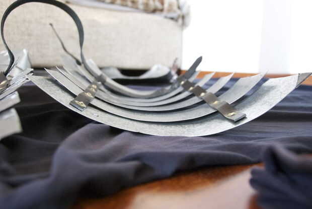 Lo que tienes que hacer es primer cur un montón de metal tiras como 20. Deben ser 15-20 cm (7.9 5.9 pulgadas) de ancho y aproximadamente tan largo como la distancia de las caderas, hacer que la distancia de tus caderas más 10cm (3.9 pulgadas)