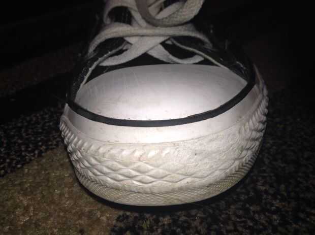 Obviamente caminar por lugares sucios se desgasta en goma con suciedad. También puede tomar la hierba y frótelo en para las manchas de hierba.