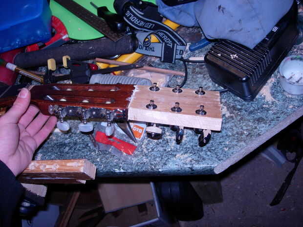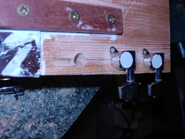 Cuando los agujeros se perforan instalar las clavijas y ver la guitarra tome forma.