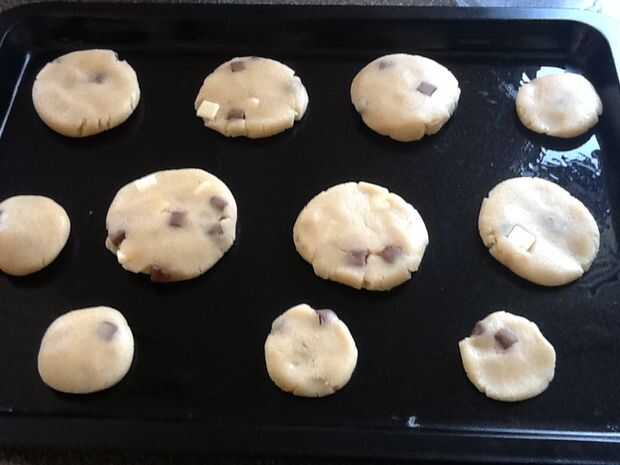 Grasa una bandeja de horno colocar las galletas en y hornear a 180 grados c/350 grados f ventilador de 160 grados c / marca de Gas 4 de 10 a 12 minutos.