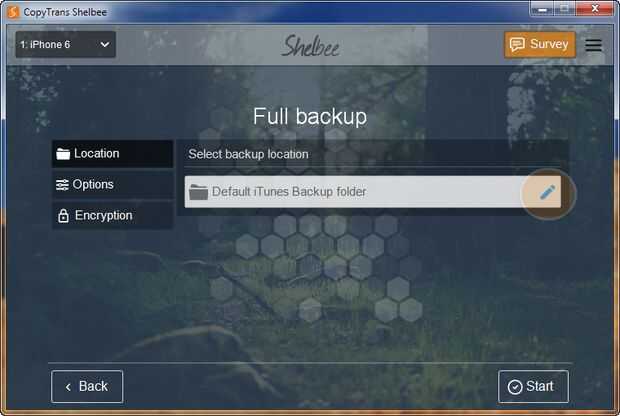 Es el momento para seleccionar la ubicación para la copia de seguridad del iPhone. Haga clic en el símbolo de lápiz en el lado derecho de la pantalla y desplácese hasta la unidad externa.