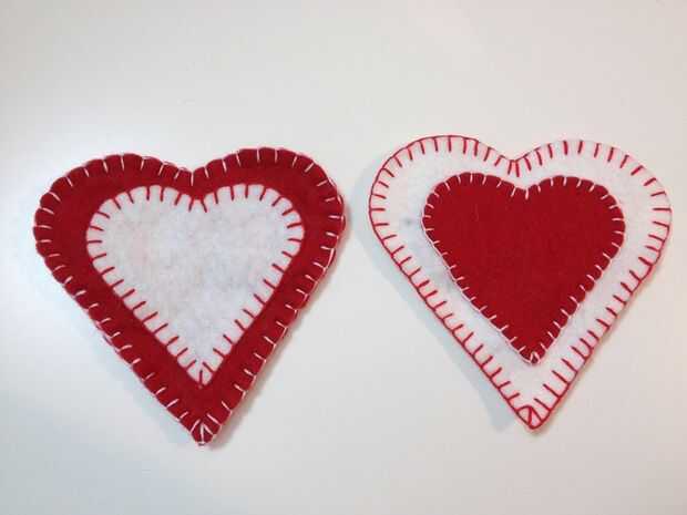 Los corazones son cosidos a mano y están hechos de fieltro, pero podría usarse cualquier tela. Las formas también podrían ser máquina cosida en su lugar.