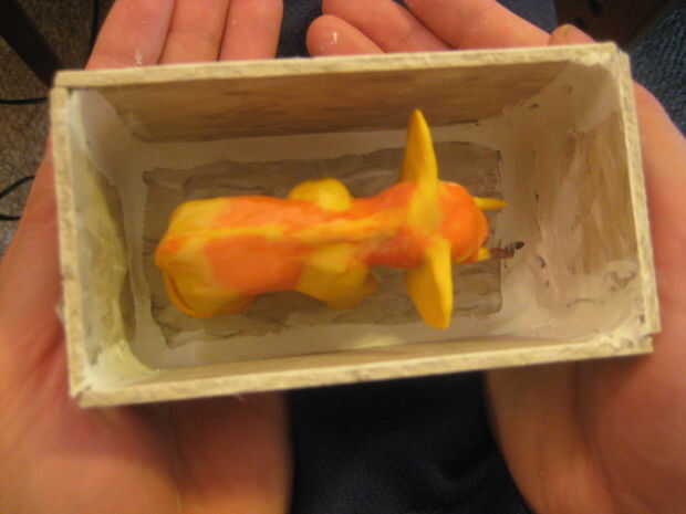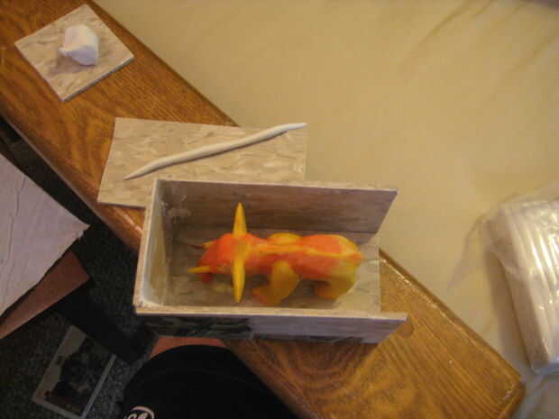 El elefante (otra vez) era más difícil. En primer lugar, sería un molde de dos partes, lo que es necesario lanzar dos veces (dejarlo reposar 6 horas en el medio). En segundo lugar, es una forma extraña y con dimensiones impares, que requieren un envase personalizado. Pero eso es lo que Home Depot para!