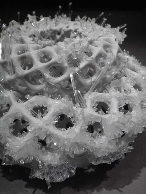 Me sorprendió encontrar que los cristales crecidos en la blanca 3D polvo grabado de enrejados de diverso tamaño crecieron cristales de diverso tamaño en cada nivel.