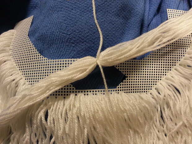 Originalmente ató un nudo en la parte posterior de la barba pero una mejor manera de hacerlo es a nudo en la parte delantera, mueva el nudo hasta el fondo del bigote para ocultarla y luego use los extremos sueltos del nudo en el resto del bigote. De esta manera usted no tiene el nudo presionando contra el labio superior.