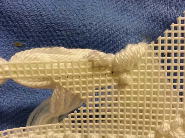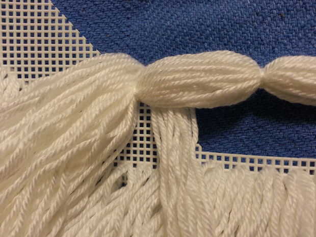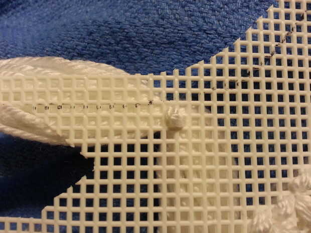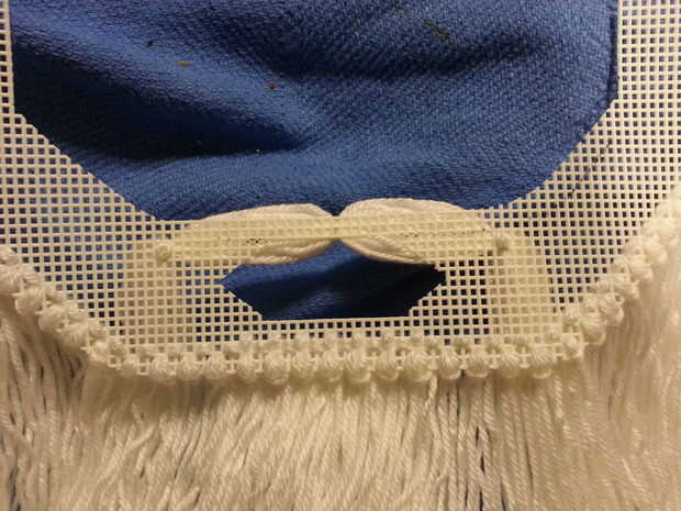 Otra forma para cubrir el borde superior de la lona de plástico es cubra el hilo por encima y detrás del bigote y luego meter algunos del paño superpuesta debajo el bigote. Esto es en lugar de plantar hilado detrás de los maricones de bigote.