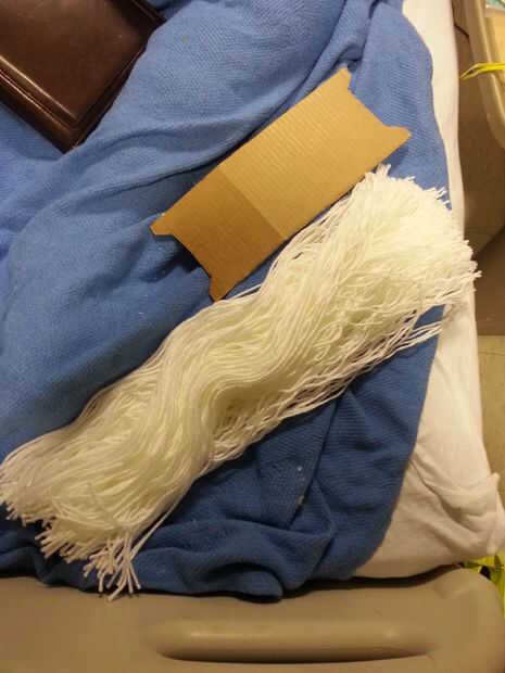 Después de que han envuelto todo el hilo, cortar el paquete por la mitad y luego tienes un montón de hilos que es dos veces más, siempre y cuando usted quiere la barba para ser. Esto es exactamente lo que quieres, porque cada pedazo de hilo de hace 2 mechones de la barba.