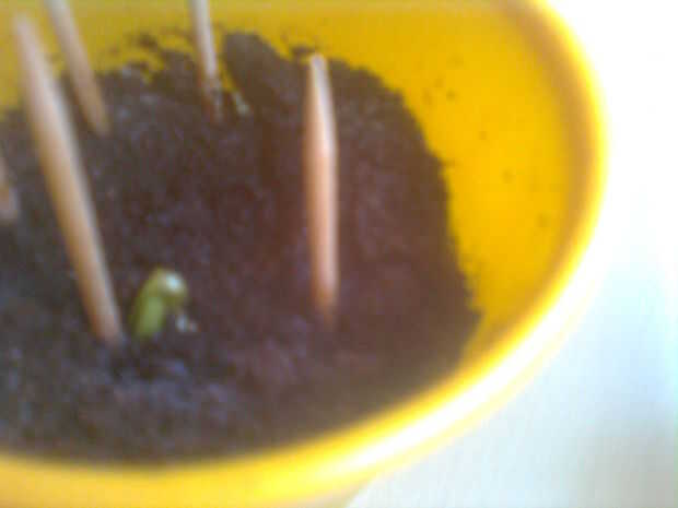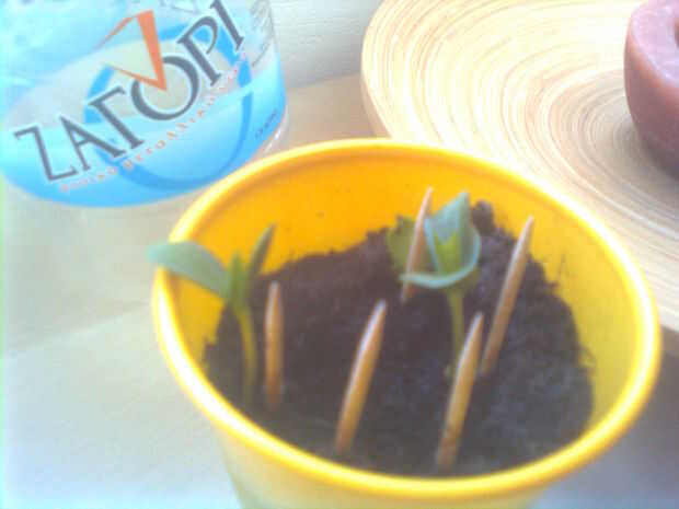 Utilizamos los palillos para empujar sobre semillas de 1.5-2 cm el 4 en la Copa y como en la foto que vivimos los escarbadientes como marcadores allí!
