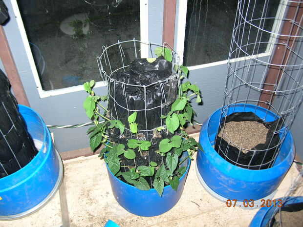 comencé en la parte inferior cuando trasplante las plantas de frijol. Acabo de cortar un agujero en la bolsa y pegado mi dedo en el suelo para hacer espacio para las raíces. Tengo unas 25 plantas de habas en la parte inferior y 30 plantas de haba verde en la parte superior. Solo tener paciencia al poner en el jardín vertical. Cuando los agujeros de perforación en la bolsa, puede conseguir desordenado con la suciedad a derramarse. Una vez en las plantas, añadir agua en la parte superior del jardín... POCO A POCO!!! Si se agrega el agua al rápido, el agua salen de los agujeros y tomar tus plantas con ella. A mí, siento que crece un jardín vertical es mucho más fácil que labrando la tierra para arriba y escarda cada semana. No he tenido que sacar una mala hierba. La primera foto fue el día después de que trasplantaron. La última foto fue 15 días después. No tuve las plantas mueren por transplante. Para mi primer jardín vertical creo que resultó gran!!!!!! Gracias por mirar.