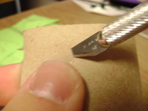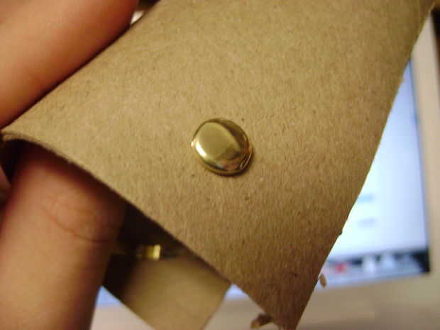 Corte/poke una pequeña abertura a través de dos rodillos, sobre grandes bastante para un sujetador de latón. Inserte los sujetadores dijimos.