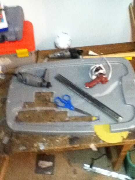 Es de las cosas que se necesita. 1. una diapositiva del cajón yo tengo la mía de Lowe. estaban por debajo de tres los niveles y deberían costar alrededor de 5 dólares. Lo siguiente que necesita es un cubo de plástico que no sé cuánto Costa porque tenía solo una tapa de cubo de plástico puesta alrededor. A continuación es pegamento caliente un poco de cinta cinta eléctrica funciona mejor, tijeras un trozo de espuma de mi tutorial pasado y un cuchillo del exacto. Y un tornillo pequeño. Último pero no menos importante un Dremal y una sierra para metales. O en vez de un Dremal puede utilizar un grabador.