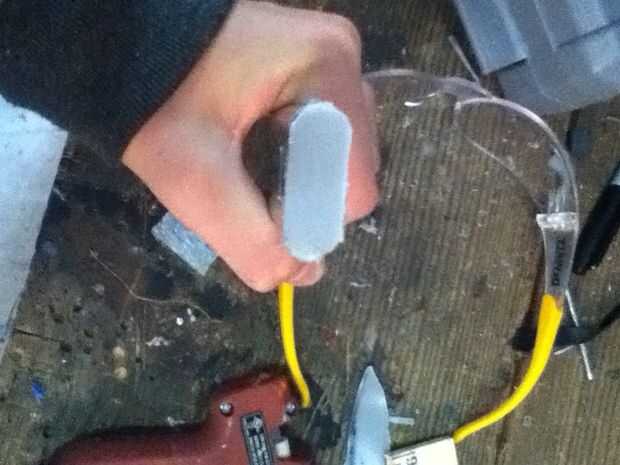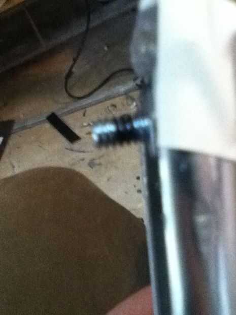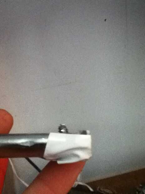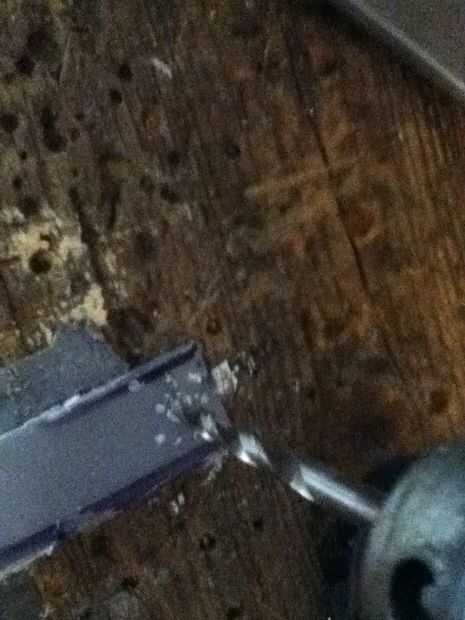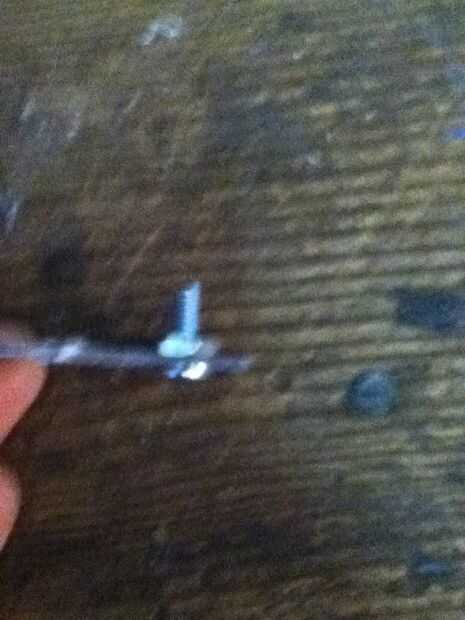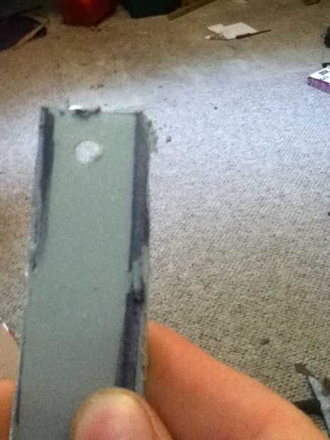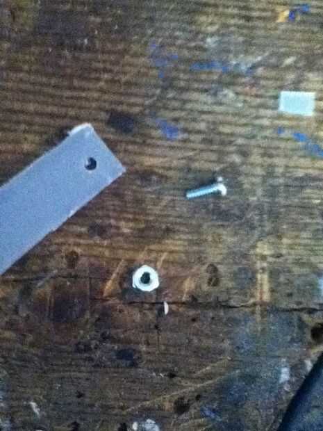 Después de recortar la hoja toma un taladro o un clavo un poke un agujero en la parte posterior de la hoja. Que conseguir una tuerca y un tornillo y colocarlo a través del orificio en el negro de la hoja. Asegúrese de que está en estrecha. Que después hacer un nuevo pedazo de un pequeño pedazo de plástico y pegamento en. Puede que necesite añadir alguna cinta. Ahora para la diversión parte pero primero tienes que cortar el tornillo que está en la hoja a tamaño. Lo que tienes que hacer es la hoja en el carril en el lado del agujero y marcarlo un poco por encima del carril de corte existía la Dremal. Ten cuidado porque después de cortar el tornillo estará muy caliente.