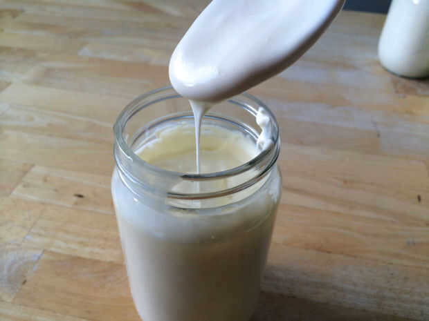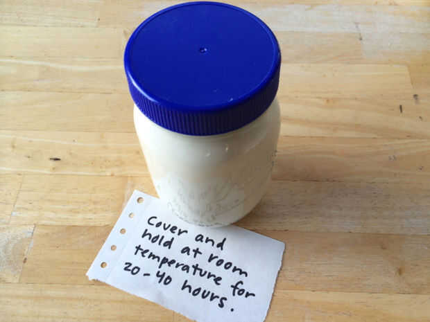Cubra la jarra y colocarla en una esquina tranquila (y oscurezca). Dejar fermentar durante 1-2 días o aproximadamente de 20 a 40 horas. Más importante que la cantidad de tiempo que deja la crema es la forma de la crema parece cuando se hace. Buscar un olor yogurty / amargo. Mira a ver si la crema haya espesado un poco. Cuando ves estos cambios, es tiempo de pasar al siguiente paso.