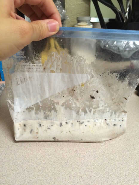 Antes de comenzar la etapa de congelación, usted querrá asegurarse de dejar salir todo el exceso de aire dentro de la bolsa más pequeña. Debería verse como la bolsa anterior.