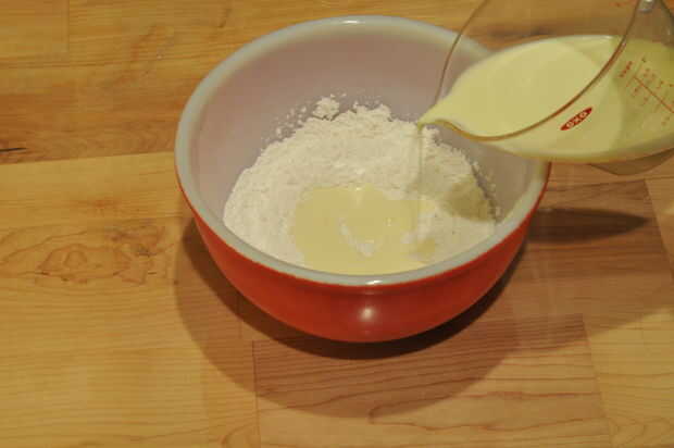 Paso 21: Añadir la leche y la mezcla de huevo a los ingredientes secos y mezcla