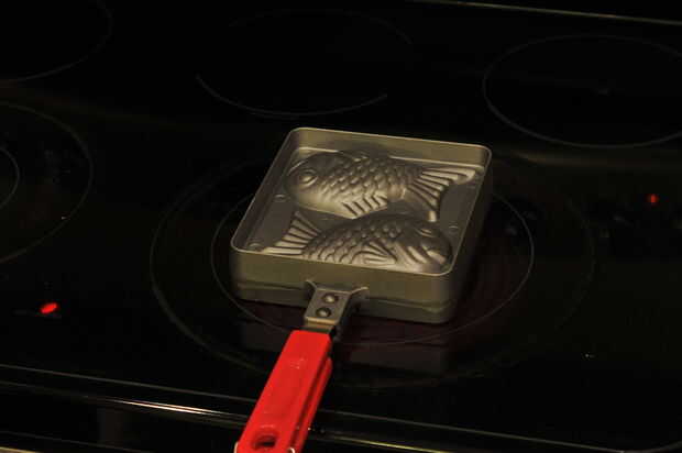 Cerrar el molde para taiyaki y darle la vuelta, cocinar durante 30 segundos a fuego medio-bajo.