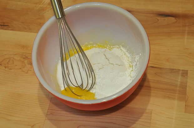 Paso 8: Mezclar los ingredientes secos con las yemas de huevo hasta formar una pasta espesa