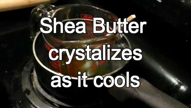 Manteca de karité tiene una natural tendencia a cristalizar durante el enfriamiento. Para evitar esto, "cocinar" en baño María durante 20 minutos en el medio a baja temperatura. Entonces enfríe rápidamente al colocar en la nevera.