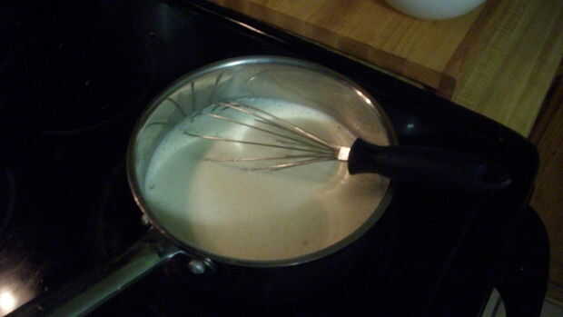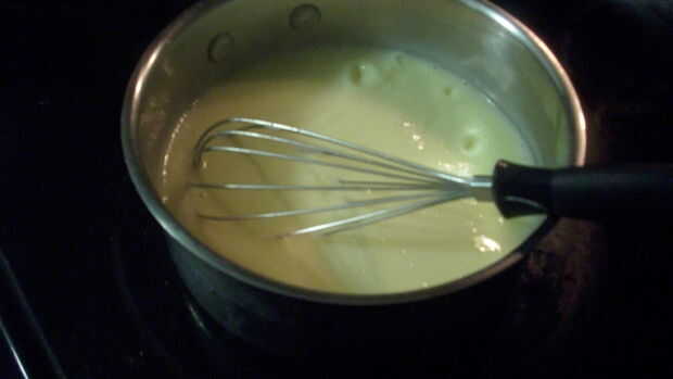 Con su bate, mueva la mezcla alrededor de la olla. Quiere mantenerlo en movimiento para que nada se pega al fondo y que se calienta uniformemente. En esta etapa son todavía posibles huevos revueltos y no quieres. El almidón necesita calor para ayudar a espesar para arriba. Las proteínas de la leche y los huevos también ayudará a espesar esta crema. Mientras se calienta, usted notará que un leve engrosamiento y las burbujas espumosas comenzará a desaparecer. Esta es una buena señal. Seguir batiendo un poco más vigorosamente ahora como la crema comience a hervir. Moviendo el bate en una espalda un movimiento hacia adelante en vez de alrededor de la olla como si agitación ayudará a facilitar la transferencia de calor a través de la crema.