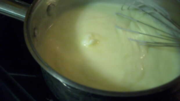 Bata hasta que la mantequilla se haya derretido. En esta etapa puede filtrar hacia fuera la crema pastelera si tienes cualquier bits revueltos o grumos, pero usted debe tener suave y deliciosa crema. Recomiendo probar la crema porque la crema pastelera caliente es realmente muy muy bueno! Pero no se quemen la boca.