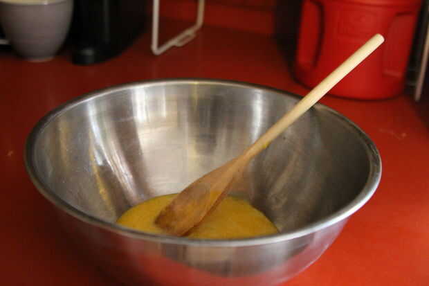 Mezcla hasta que el azúcar y los huevos están totalmente integrados.