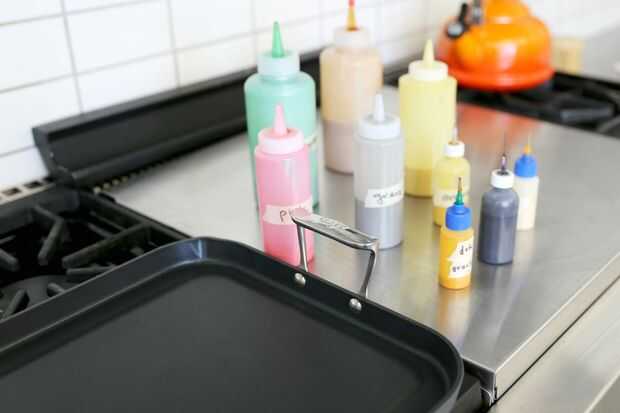 Encienda los quemadores 'LOW' para calentar la sartén y darle a la superficie un trapo con aceite vegetal en una toalla de papel. Esto es para garantizar que se trabaja sobre una superficie antiadherente que hará más fácil voltear formas largas o complicadas.