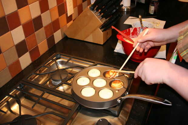 Si oro marrón, aplique más presión en el primer palillo amd uso segundo tire panqueque encima y voltear
