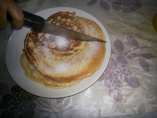 Hola gente! Esta es la primera vez que me has visto en la sección de alimentos. Lo que siempre hago con panqueques es poner chocolate en polvo en él y no me enrollo en un rollo. Son oro deliciosos y me encantan y espero que no hagas demasiado!Por fav