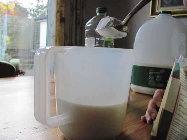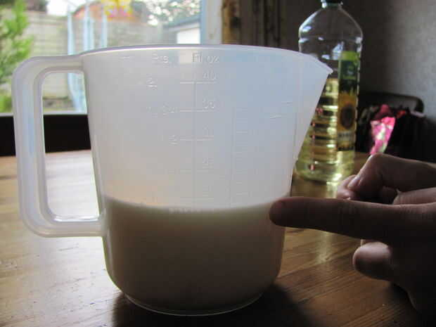 Paso 1: reunir los ingredientes para la masa. For the batter:1 taza de harina refinada2 cucharaditas de azúcar1/4 taza de harina de arrozuna pizca de semillas de mostaza1/2 a 2 tazas de lecheAceite, para cocinar esto.Paso 2: reunir los ingredientes p