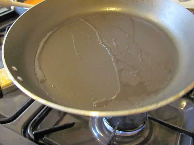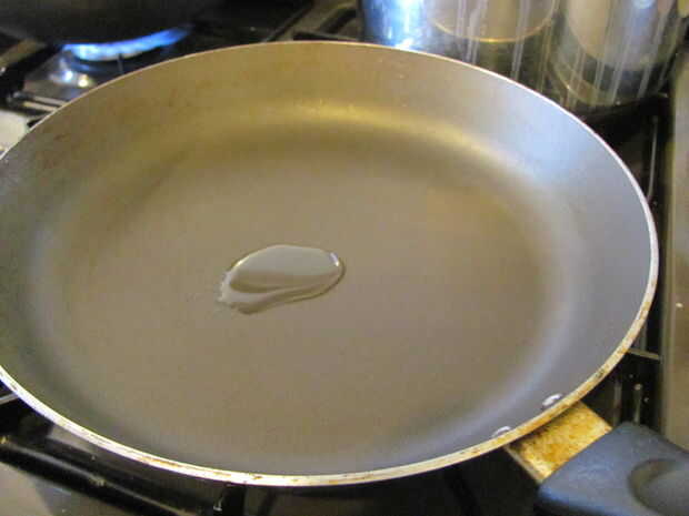 Now, we'll cook them! Poner la olla sobre fuego medio. Sacar la sartén y poner un pequeño poco de aceite sobre ella.