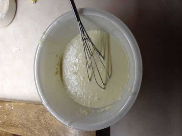 A continuación, combinar todos los ingredientes con el mismo bate en el tazón de fuente. La consistencia de la masa de crepe no debería ser demasiado liquidez pero no debe ser demasiado gruesa y para obtener la taza de colocar junto a la estufa.