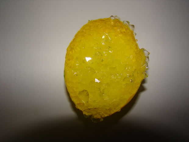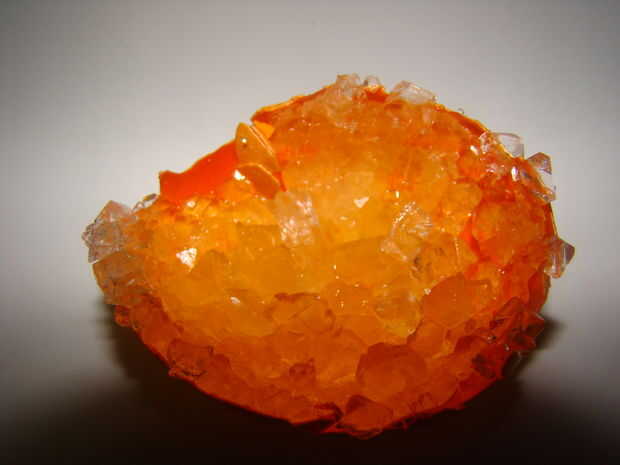 Esta una variación de cristal común, técnicas de cultivo.  En vez de cristales en una cadena de crecimiento, crecen dentro de una 'geoda' hecha de una cáscara de huevo y yeso de París.Materiales:Cáscaras de huevo (lavadas)yeso de Parísvaso desechable