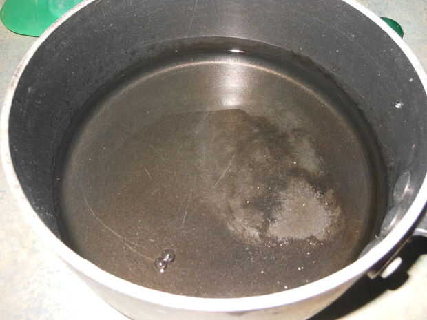 Colocar el agua en la cacerola.  Gire el calor de la hornilla al medio.