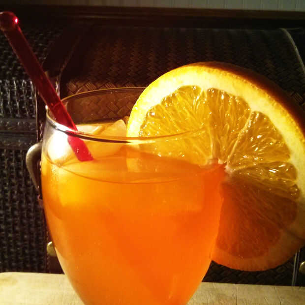Con la estrella como guía, deslice su rodaja de naranja sobre el borde de su vaso. Cuelgue su rodaja de naranja perfecto el borde por lo que parece estar pasando aunque el vidrio. Wow.