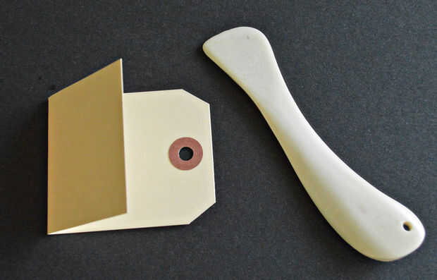 Doble en primer lugar, la etiqueta de la caída para que coincida el borde inferior en la parte inferior del agujero de la etiqueta.