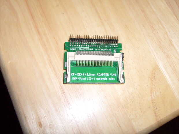 Esto se hace generalmente con un IDE para adaptador de CF. Adaptadores de tarjetas simples y dobles están disponibles. Si usted piensa que necesitará dos tarjetas, conseguir al adaptador doble ahora ahorrará el problema más adelante. Si usted decide utilizar un microdrive, tenga en cuenta que son ligeramente más gruesos, y que los adaptadores deben mencionar que cupieron los microdrives más grueso.