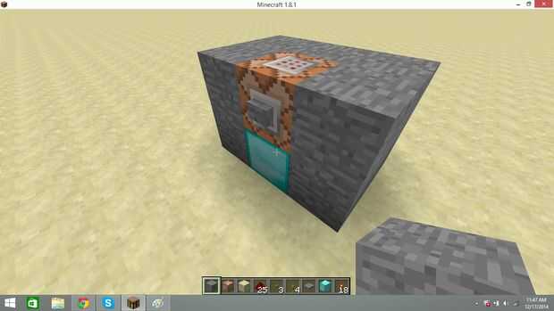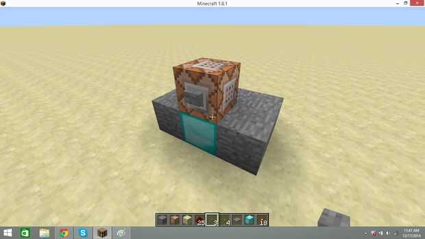 Coloque el bloque que desea como el pecho en el lugar con el agujero. Tome el bloque de comando y coloque encima el bloque de pecho. (Para obtener un bloque de comando, tipo justo en la sección de conversación, "dar minecraft:command_block YourNameHere") Luego poner un boton en la parte delantera del bloque de comando. (Para poner las cosas en bloques que responden a los clics, como la elaboración de tablas, pulse la tecla Mayús para agacharse y luego colocar el bloque, o en este caso un botón). Después de haber colocado el bloque de comando lo rodean con el último de sus bloques de la pila de diez.