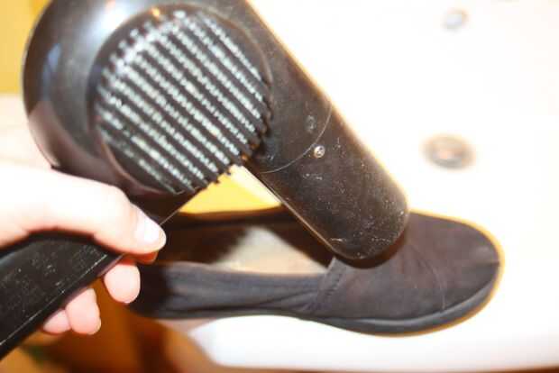 Seca el zapato hasta la zapatilla va de "blanco", de su color original.
