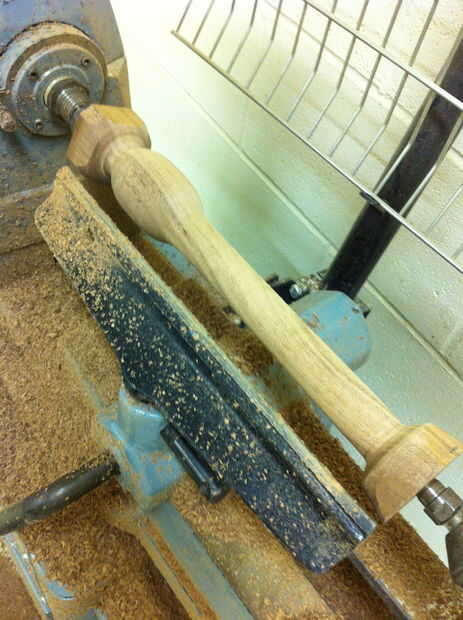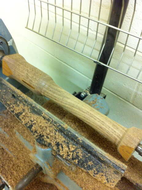 Hice primero las cucharas 10". Básicamente, a partir de 1.5 pulgadas de un lado, crea un eje largo de 8 pulgadas que era cerca de 1 pulgada de diámetro. En cerca de 8 pulgadas, amplió el eje en un bulbo de 2-2.25 pulgadas de largo y aproximadamente 2 pulgadas de diámetro.