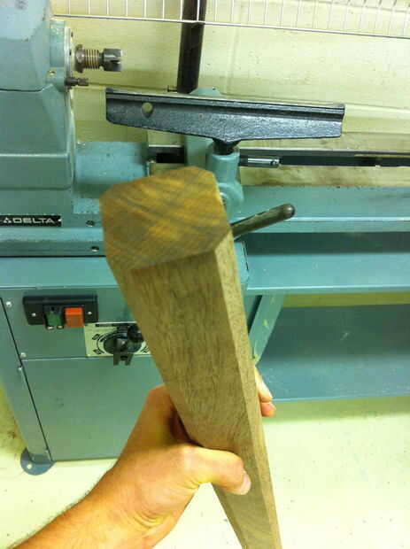 Primero cortan los bordes de mi acción, convirtiéndose en un octógono (esto hace más fácil convertirlo en un cilindro en el torno). Entonces corte la población en cerca de 13 pulgadas, dándome una 13 pulgadas pieza y uno de 17 piezas. Siempre necesita a 1-2 pulgadas a cada lado de su producto al girar en un torno, ya los ejes en torno a poco en algo substancial. Las dimensiones de a que mi leña me permitieron tener 1.5 pulgadas a cada lado de ambas piezas. También, la razón quiere cortar la madera por la mitad en todo es porque puede doblar madera, por trabajar con una pieza de 15 pulgadas es mucho más fácil y más segura que trabajando con una pieza de 30 pulgadas, simplemente porque una pieza corta de madera desvía menos bajo una determinada presión que uno más largo. Menos desvía su madera, más rápido podrás cortar madera, y menos probable es que tu trabajo va a volar del torno.