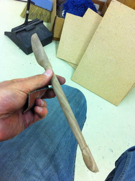 La cuchara de 14" no necesita cualquier trabajo realizado a la empuñadura, por lo que sólo tocaba hasta la forma de tazón de fuente un poco.