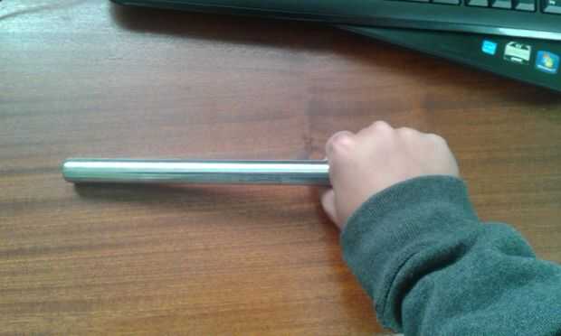 va a hacer un cuchillo o una espada y cortar a la longitud deseada, recordando incluir espacio para el mango. Coloque su mano o manos en el borde de la tubería y usar el lápiz para marcar donde va a terminar el mango y la hoja empezará.