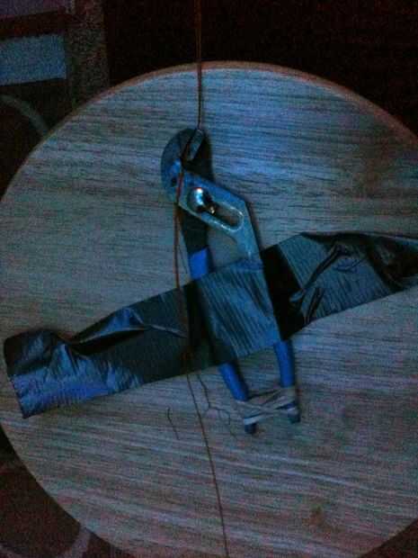 Por favor pida su asistente lentamente comience a taladrar y mantenerlo en tan bajo una velocidad como sea posible. Su asistente será necesario mantener una tensión suave en los cables, lo suficiente como para mantenerles enseñó. El ayudante debe mantener el taladro paralelo a la cuerda, de lo contrario la tirada corta a través del cable y se quite la pieza de trabajo: esto no es fatal para el proyecto, pero es muy molesto.