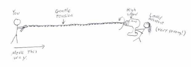 Usted se sentirá la cuerda se corta y tienes que mover hacia el taladro para mantener una constante tensión suave.