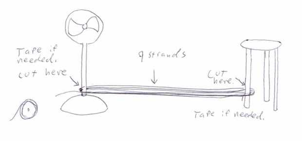 Continuar hacia adelante y hacia atrás entre sus montantes teniendo cuidado de ser consistentes con el desenrollado y tratando de mantener la tensión en el cable.